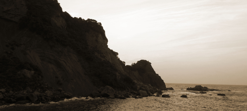 ある時、岬から60〜70mほど離れた先の小島へ、岩ガキを採りに行ったことがありました。2歳上の兄と近所の仲間4〜5人で勇んで向かったものの、海の際までいくと、想像以上に潮の流れが速い。どうしたものかなぁと考えていると、ふいに誰かが私の背中を勢いよく押したのです。